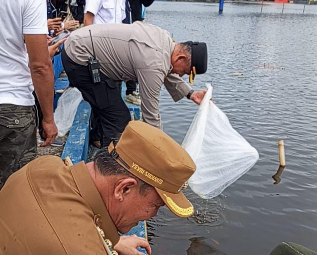 Pelepasan benih dilakukan langsung oleh Bupati Bengkulu Selatan, H. Rifai Tajuddin S.Sos, didampingi Plt. Kepala Dinas Perikanan Bengkulu Selatan, Nengsi Apriani, S.Pi, serta perangkat daerah lainnya (dok-Harianbengkuluekspress.id)