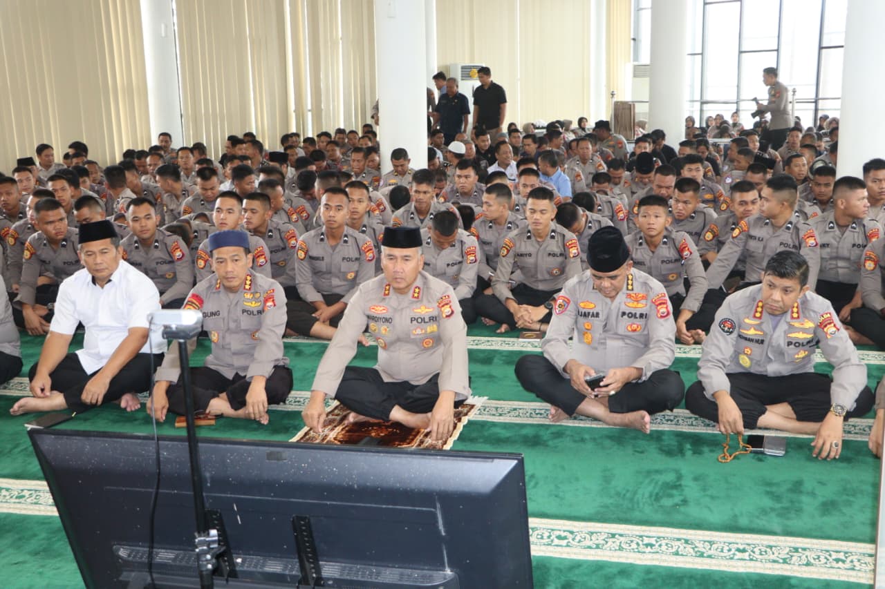 Kegiatan yang berlangsung pukul 08.00 WIB hingga 09.00 WIB itu digelar secara terpusat melalui Zoom Meeting dengan lokasi utama di Masjid Al-Amin Mapolda Bengkulu.