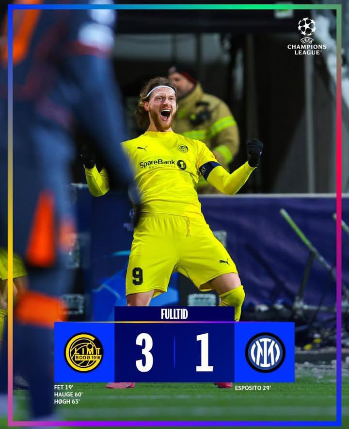 Bermain di hadapan pendukung sendiri di Aspmyra Stadium, mereka sukses menumbangkan tim kuat Inter Milan dengan skor meyakinkan 3-1.
