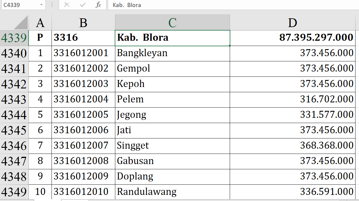 Berikut rincian desa yang menerima Rp373.456.000: