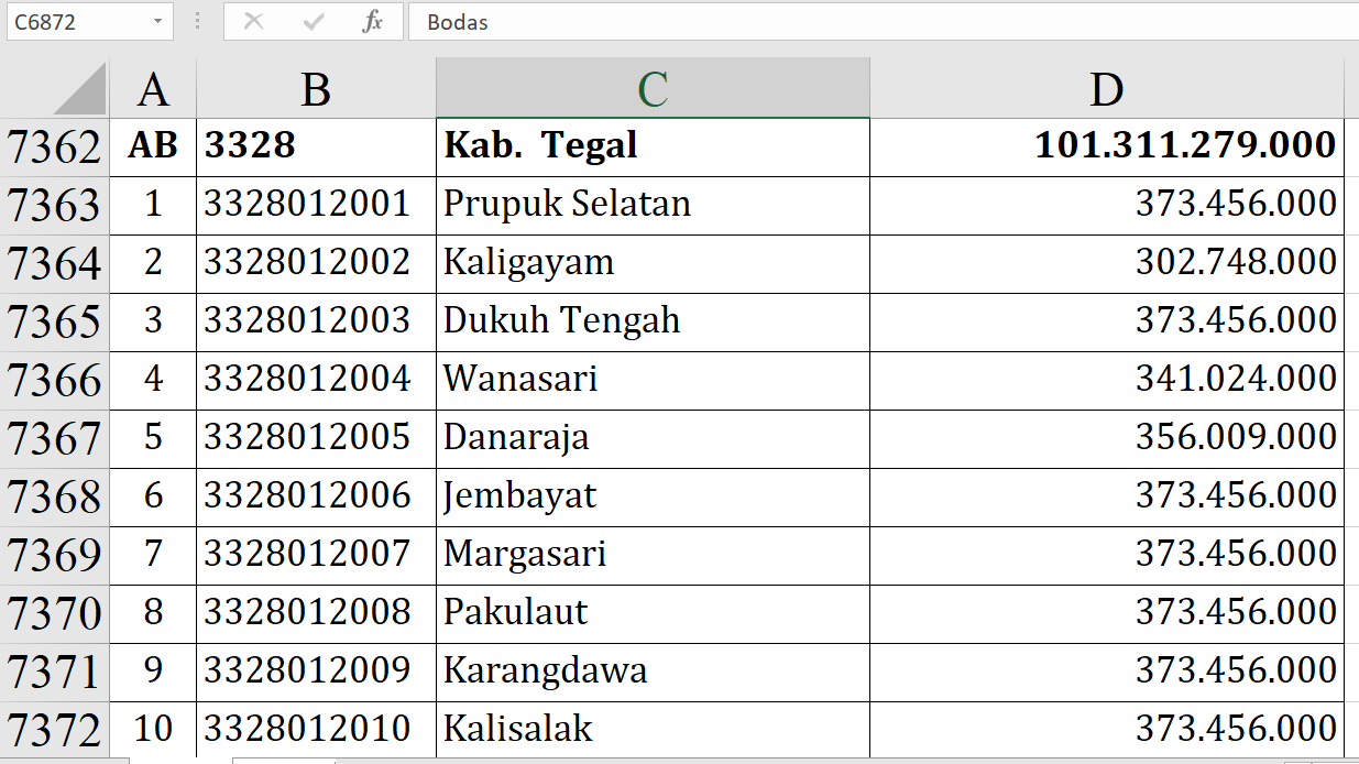 Kedungwungu Rp518.956.000; Penyalahan Rp518.956.000; Wotgalih Rp518.956.000;