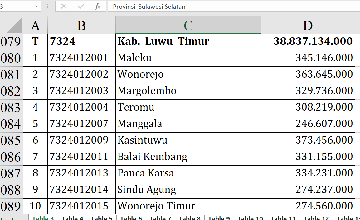 Menariknya, Dana Desa 2026 Luwu Timur menunjukkan pola hampir merata di banyak desa. Sejumlah desa menerima Rp373.456.000.