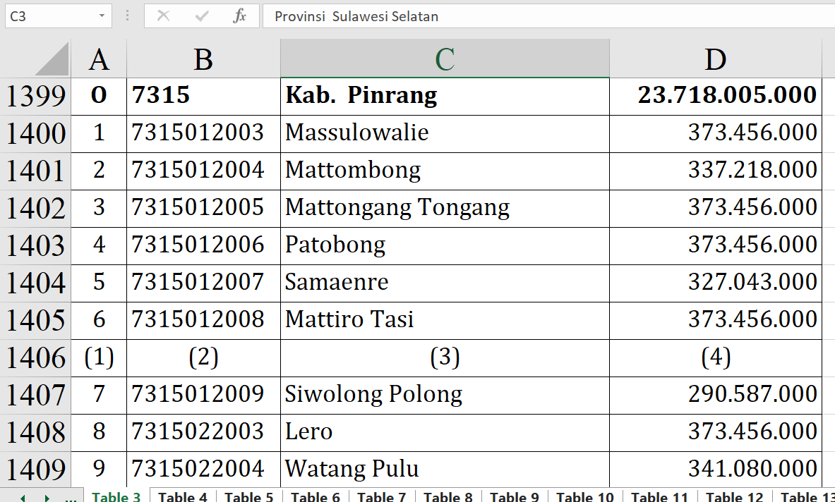 Sementara itu, banyak desa mendapatkan Rp373.456.000. Di antaranya Massulowalie, Mattongang Tongang, dan Patobong.