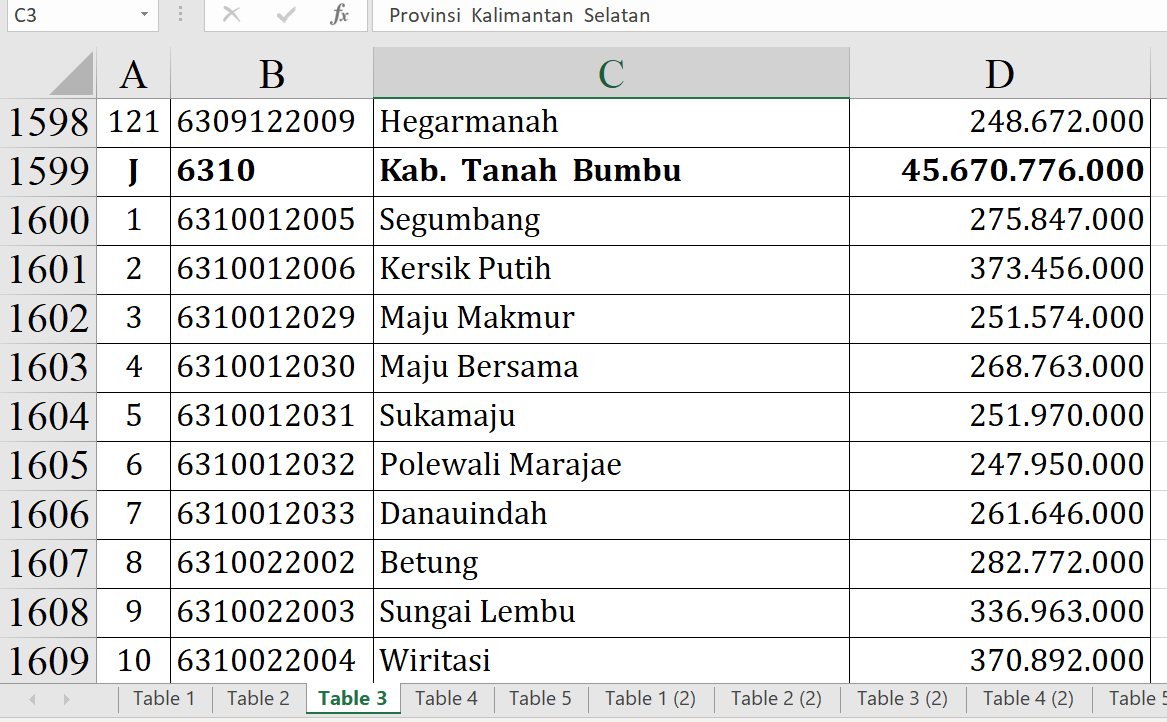 Selain itu, Desa Sejahtera Mulia, Pacakan, dan Sari Gadung juga memperoleh Rp373.456.000. Nilai tersebut termasuk alokasi tertinggi dalam Dana Desa 2026 Tanah Bumbu.