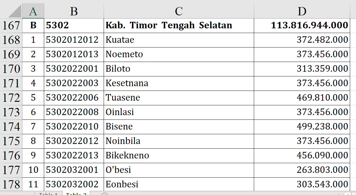 Desa Billa, Mnelaanen, dan Nobi-Nobi menerima Rp548.060.000.