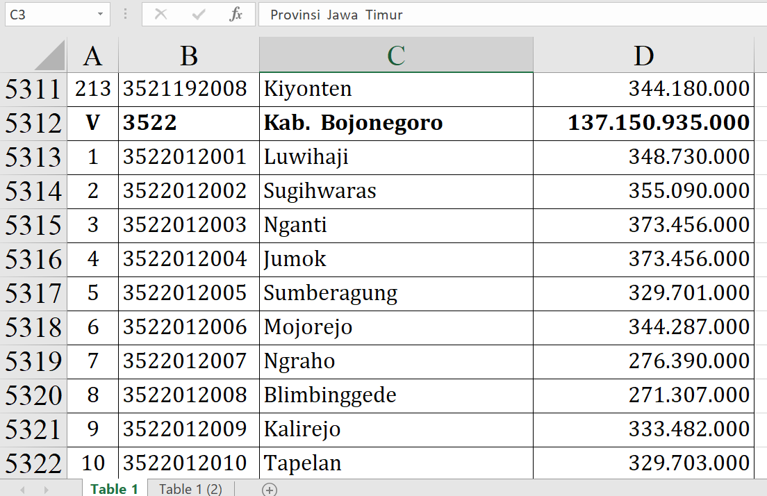 Jumlah tersebut berasal dari pemerintah pusat melalui APBN. Dana ini langsung mengalir ke desa-desa di Kabupaten Bojonegoro.