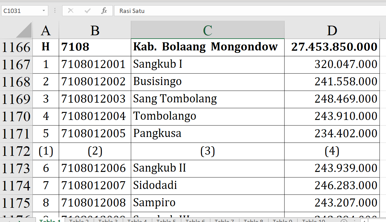 Mome menerima Rp373.456.000. Huntuk Rp364.460.000. Boroko Rp356.902.000.