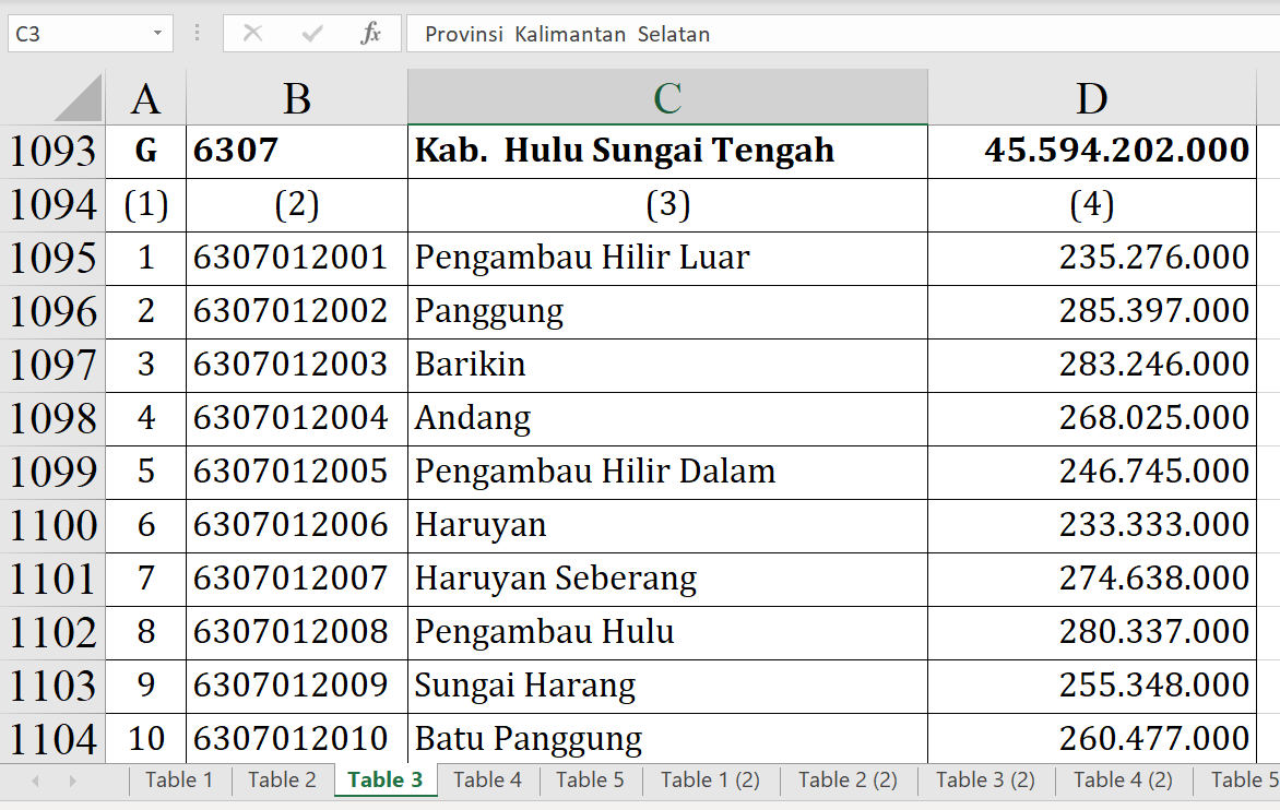 Beberapa desa tercatat menerima alokasi tertinggi pada tahun ini. Desa Mangunang Seberang mendapat Rp373.456.000. Jumlah yang sama diterima Desa Kahakan.
