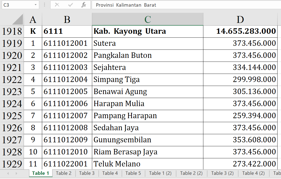 Sebagai contoh, Desa Sutera menerima Rp373.456.000. Nilai yang sama juga diterima Desa Pangkalan Buton dan Desa Harapan Mulia.