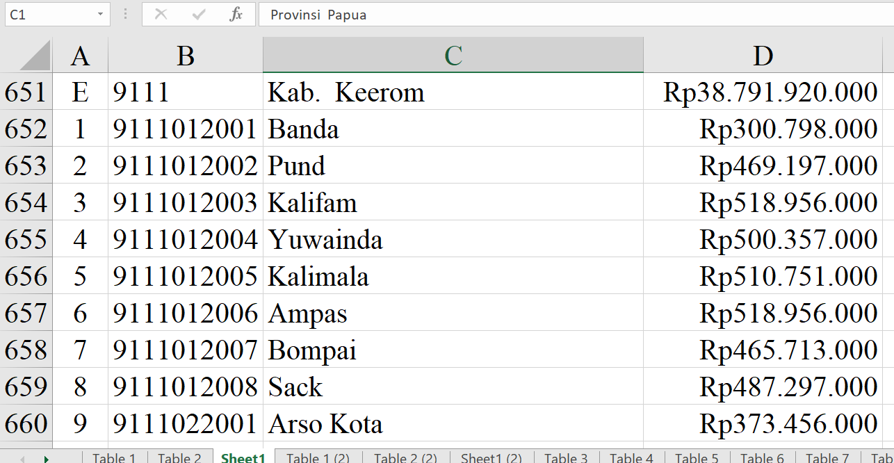 Selanjutnya, Desa Embi menerima Rp546.236.000. Desa Dubu mendapat Rp522.655.000. Sementara Desa Ampas, Kalifam, Sangke, Senggi, Usku, Waley, dan Yabanda masing-masing Rp518.956.000.