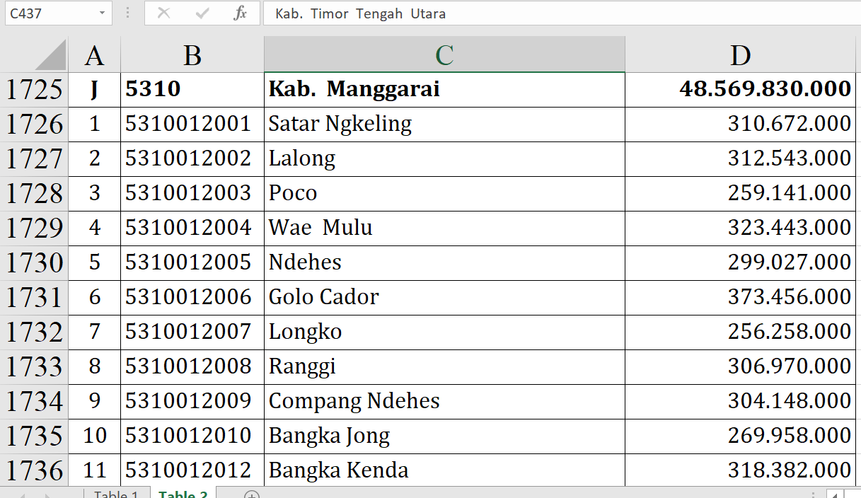 Jumlah yang sama juga diterima Kajong, Nggalak, dan Wae Renca.