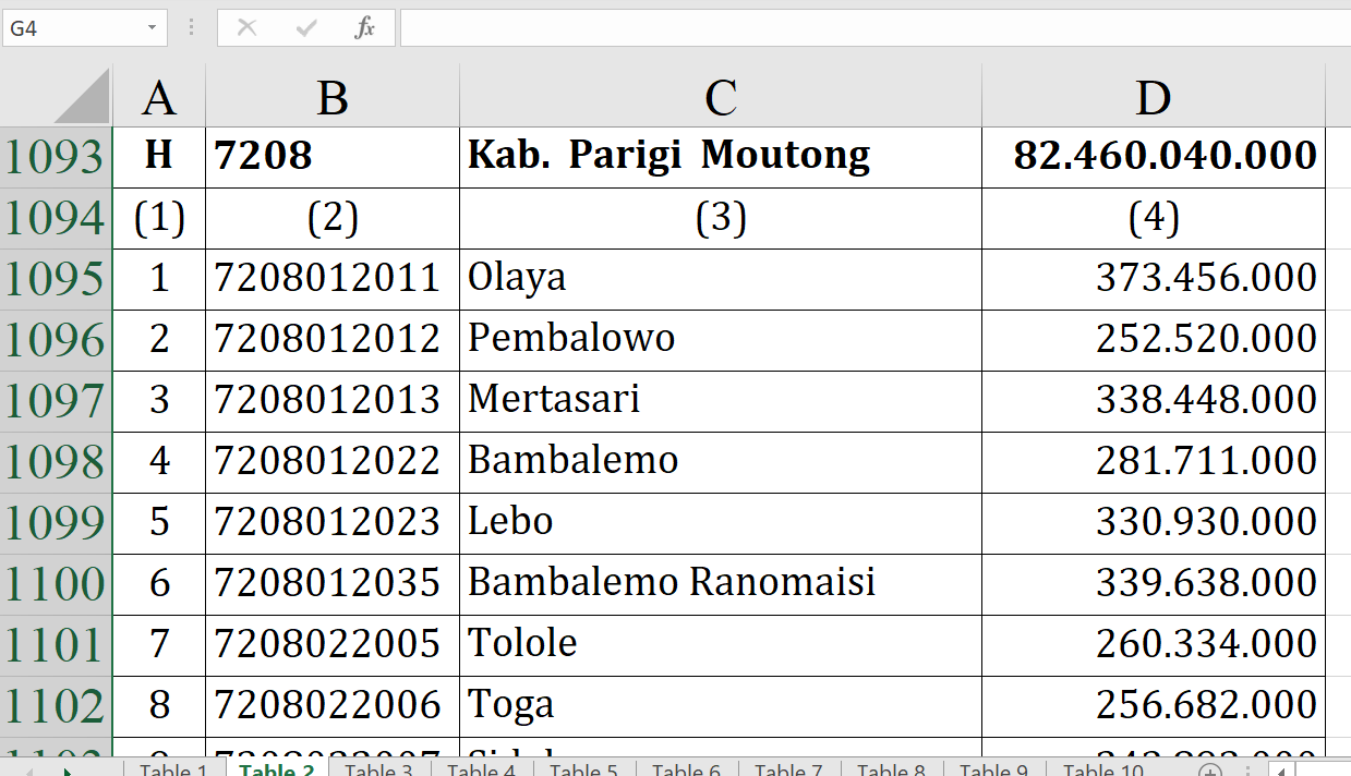 Sementara itu, puluhan desa menerima Rp373.456.000.