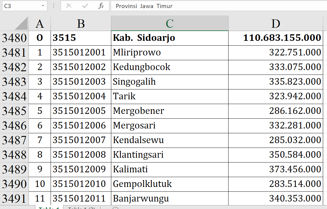 Sebagian besar desa menerima alokasi maksimal Rp373.456.000. Nilai ini menjadi angka yang paling banyak muncul dalam daftar Dana Desa Sidoarjo 2026.
