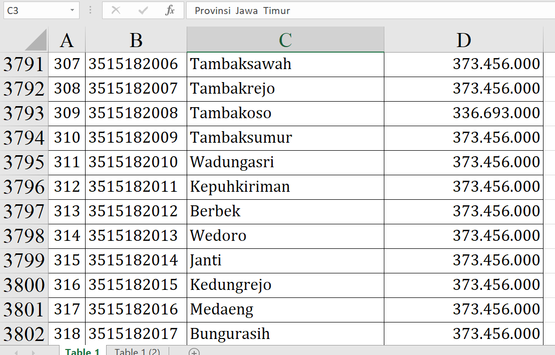 Beberapa desa menerima dana di bawah Rp300 juta. Contohnya Desa Mojorangagung memperoleh Rp241.113.000.