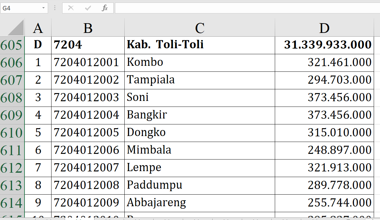 Soni, Bangkir, Ogotua, Oyom, Dadakitan, Lelean Nono, Kalangkangan, Tinigi, Ginunggung, Lalos, Laulalang, Salumpaga, Galumpang, dan Lingadan masing-masing menerima Rp373.456.000.