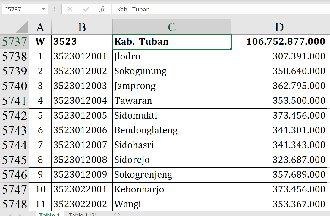 Anggaran tersebut akan disalurkan ke ratusan desa di Kabupaten Tuban, Provinsi Jawa Timur. Setiap desa mendapatkan alokasi dasar yang sama pada tahap awal.