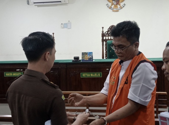 Jaksa memborgol terdakwa setelah persidangan selesai di PN Bengkulu (dok-KORANRB.ID)