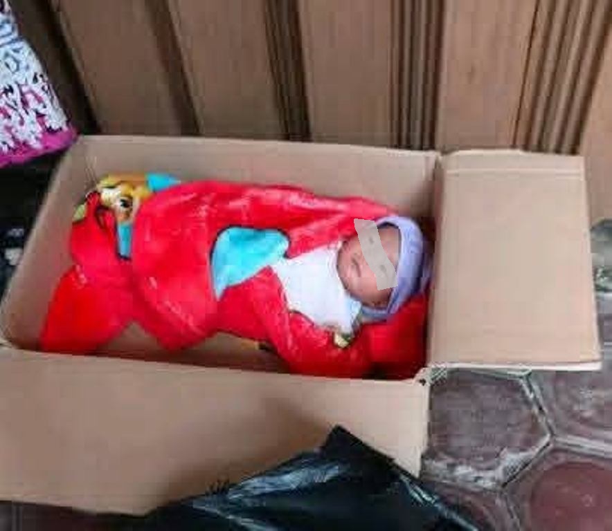 Begitu kardus dibuka, warga terperanjat melihat bayi yang masih merah tergeletak tanpa pengasuhan.