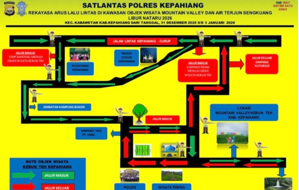 KEPAHIANG, RBMEDIA.ID – Satuan Lalu Lintas (Satlantas) Polres Kepahiang akan menerapkan rekayasa arus lalu lintas satu arah atau one way menuju kawasan wisata Kebun Teh Kabawetan selama masa libur Natal dan Tahun Baru (Nataru) 2025–2026.