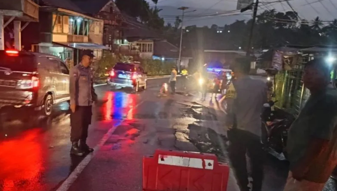 REJANG LEBONG, RBMEDIA.ID – Hujan deras yang mengguyur Kabupaten Rejang Lebong, Provinsi Bengkulu pada Minggu sore (21/12) menyebabkan Jalan Lintas Curup-Lubuklinggau di Kelurahan Kesambe Baru, Kecamatan Curup Timur amblas.