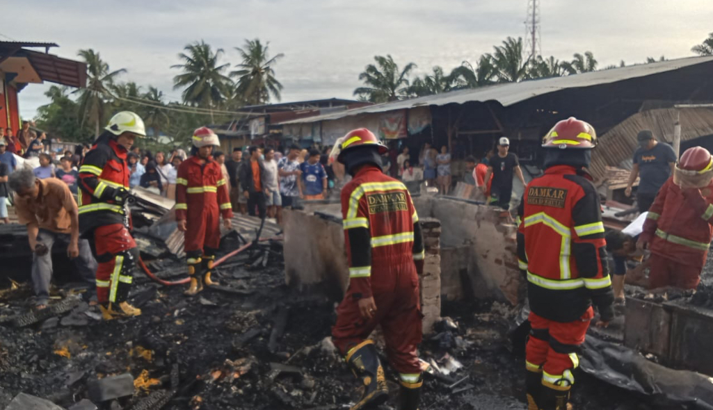 Peristiwa tersebut meludeskan sedikitnya 30 kios pedagang dan memicu kepanikan warga.