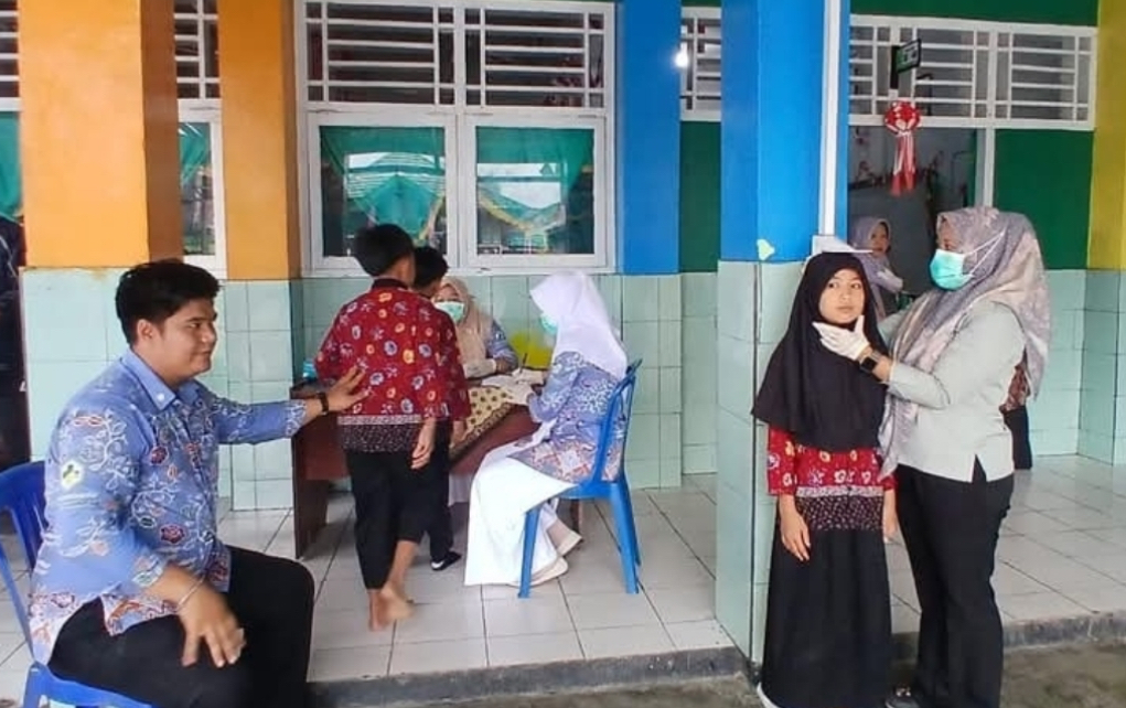 Aktivitas pengecekan kesehatan kepada siswa sekolah yang dilakukan oleh Puskesmas Rejang Lebong (dok-KORANRB.ID)