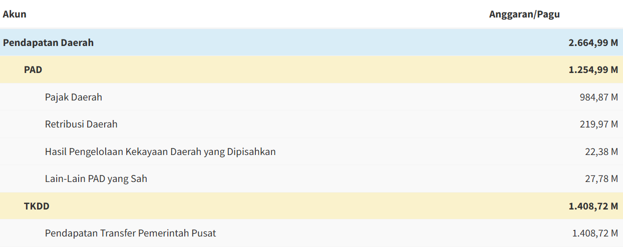 Pendapatan Asli Daerah atau PAD menjadi penopang utama.