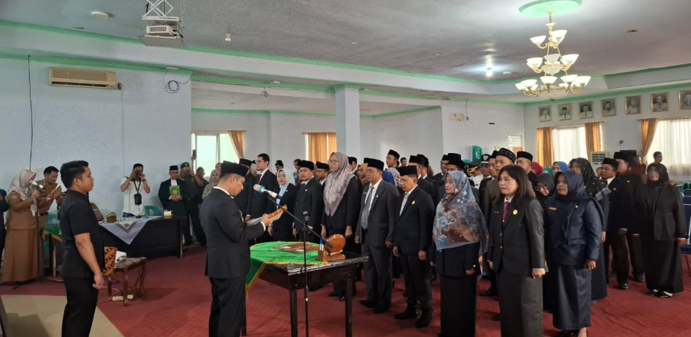 60 pejabat struktural dan fungsional resmi dilantik dan diambil sumpah jabatannya dalam upacara yang berlangsung khidmat di Ruang Pola Pemkab Rejang Lebong (Dok-harianbengkuluekspress.id)