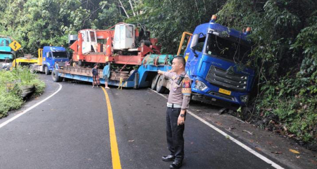BENGKULU TENGAH, RBMEDIA.ID – Arus lalu lintas dari Kota Bengkulu menuju Kabupaten Kepahiang maupun sebaliknya lumpuh total setelah sebuah truk trailer tergelincir di kawasan Liku Sembilan, Kecamatan Taba Penanjung, Kabupaten Bengkulu Tengah.